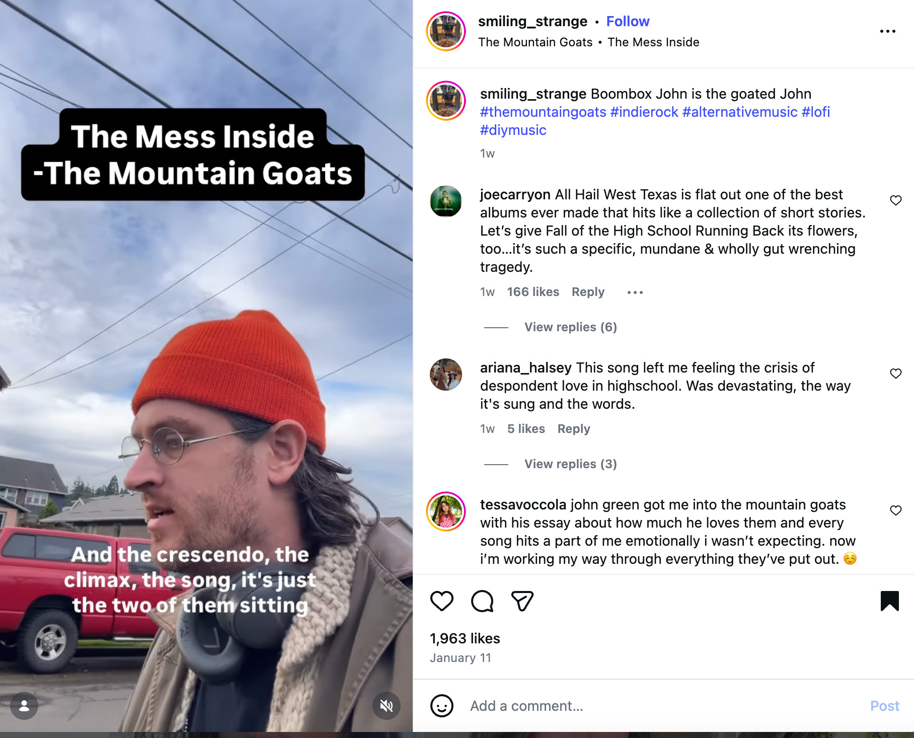 I’ve been listening to The Mountain Goats a lot this week. Any other fans? Watch this Reel here.