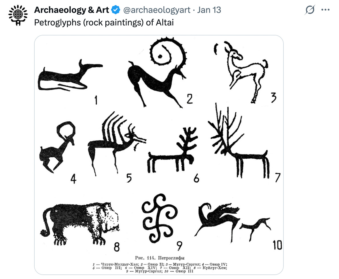 Petroglyphs of deer-like creatures.