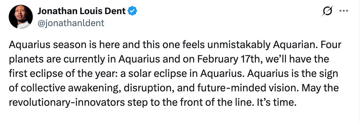 Aquarius season. I’m an Aquarius (stellium), and so I’m partial, but I love the energy this season brings.